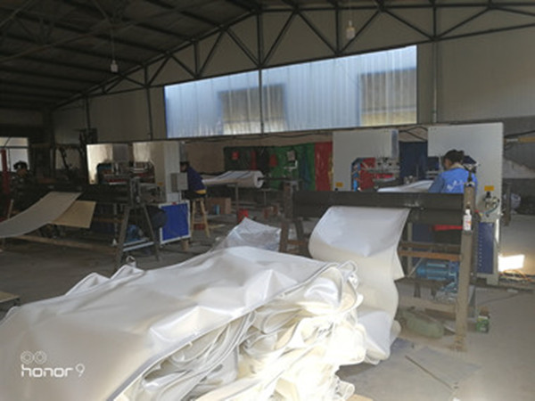 2、熱風(fēng)焊接工藝:通過高溫?zé)峥諝鈱?duì)準(zhǔn)熱合面吹熱風(fēng),使PVC刀刮布表面受熱融化并滾動(dòng)加壓讓兩層刀刮布之間貼合,生產(chǎn)效率高。缺點(diǎn)焊接效果不穩(wěn)定并且表面容易變形起皺,異型加工有難度。而且需要耗費(fèi)比較多的人力,一次熔接需要5-6人操作。