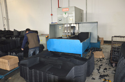 運(yùn)用高頻機(jī)工作原理+油壓助力配合相應(yīng)的地毯模具瞬間對(duì)主地毯踏板焊接的一種工藝,美之電展示主地毯踏板熱合機(jī)加工現(xiàn)場(chǎng)參考。